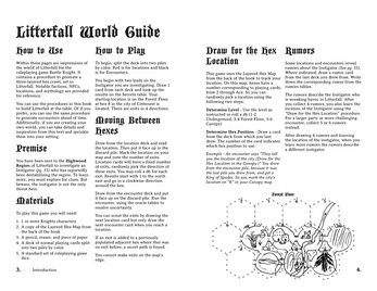 You can use the procedures in this book to build Litterfall at the table. Of if you prefer, you can use the same procedure to generate encounters ahead of time. Additionally, if you are creating your own world, you can take details and inspiration from this text and sprinkle them into your setting.